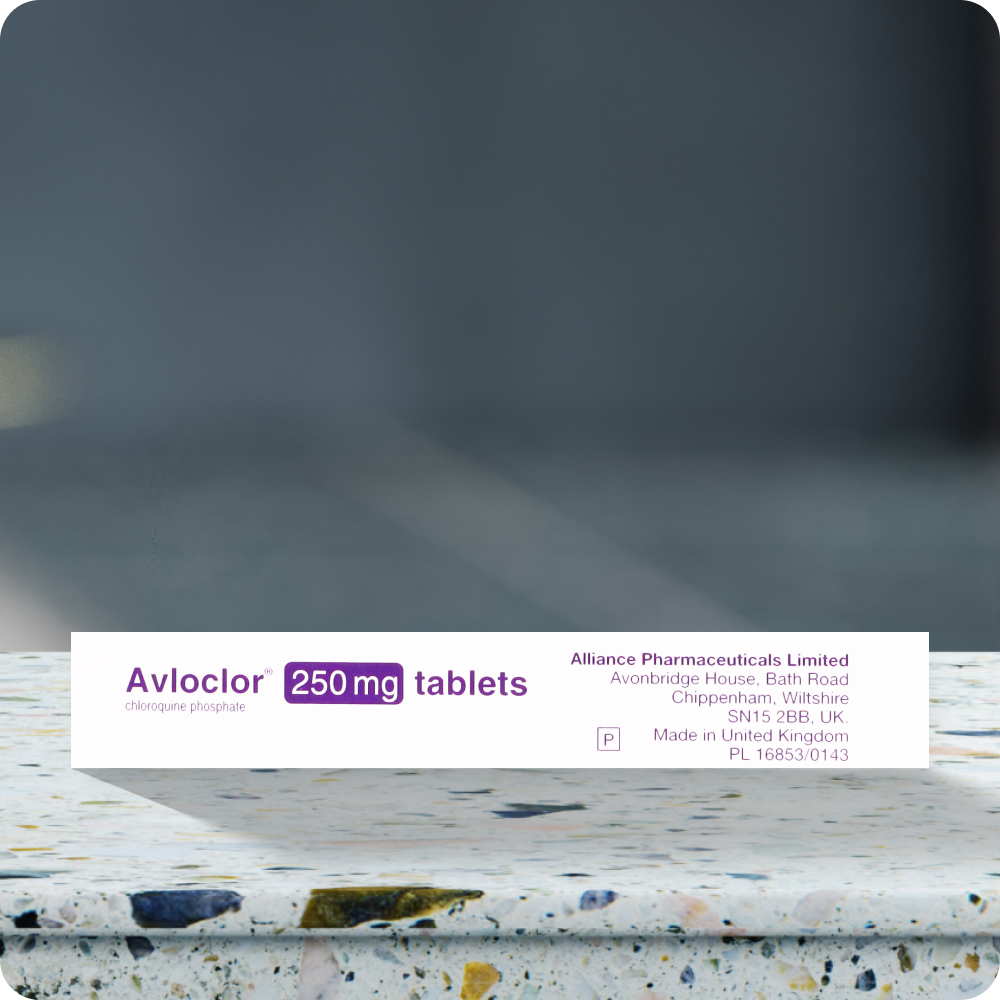 Avloclor 250mg Tablets contain chloroquine, a medicine used to prevent and treat malaria, a serious disease caused by parasites transmitted through mosquito bites. Chloroquine works by interfering with the growth and reproduction of the malaria parasites in the red blood cells, helping to stop the infection from developing or worsening.