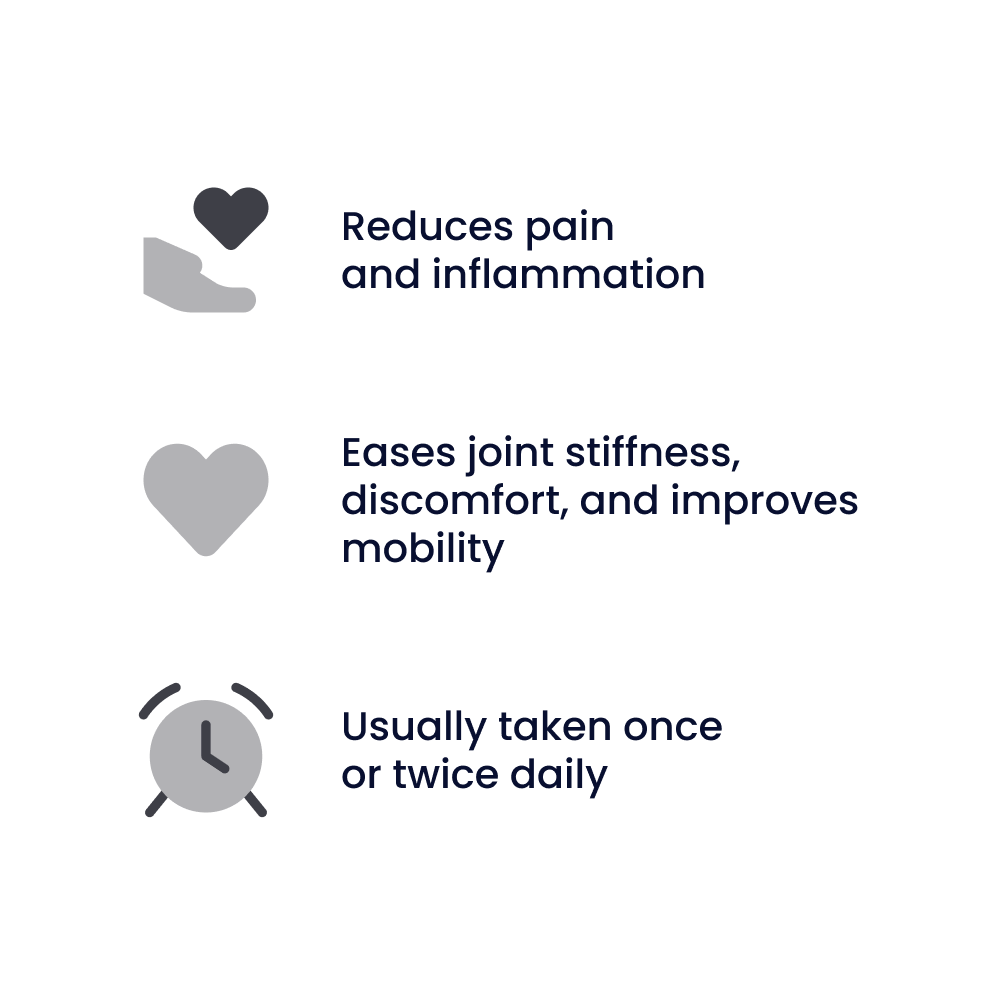 By targeting COX-2 specifically, celecoxib helps ease joint stiffness, improve mobility, and reduce discomfort, while minimising some of the stomach-related side effects linked with traditional NSAIDs. The capsules are usually taken once or twice daily, as prescribed, and should be used at the lowest effective dose for the shortest necessary time.