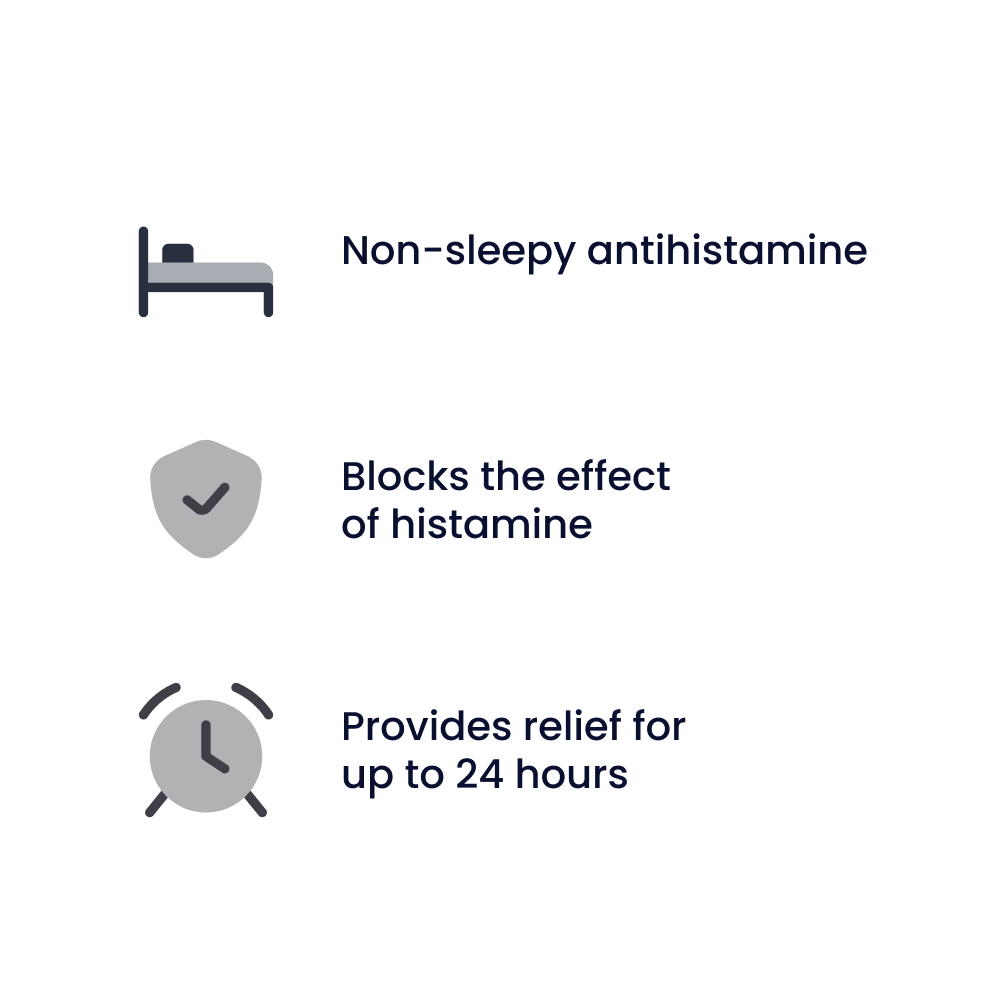 Cetirizine can also help reduce itching and swelling in skin allergies and hives (urticaria). The tablets are usually taken once daily and provide relief for up to 24 hours. Cetirizine is generally well tolerated and allows most people to carry on with daily activities without feeling sleepy.