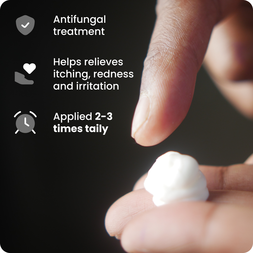 The cream is applied thinly to the affected area two to three times daily and should be used for the full recommended course, even if symptoms improve, to prevent the infection from returning. It is suitable for adults and children, including babies for nappy rash treatment.