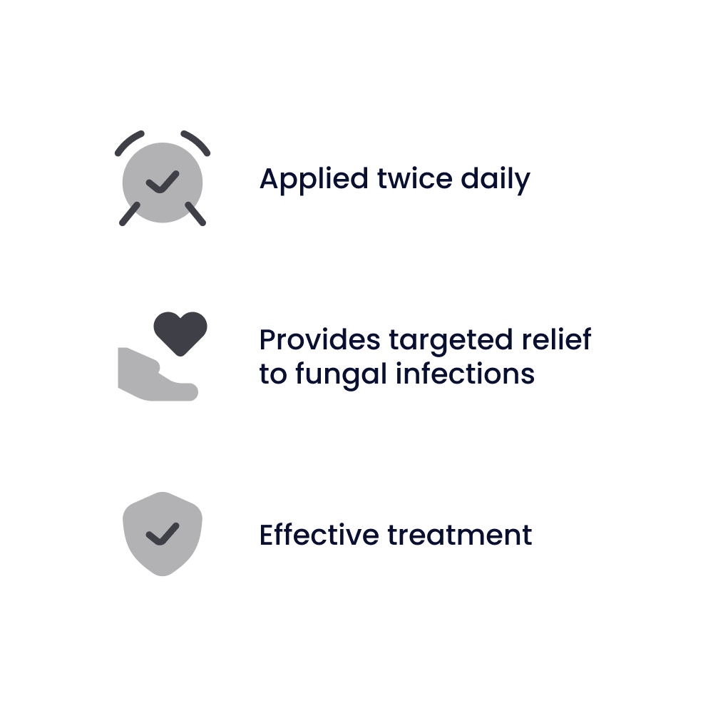 It is applied thinly to the affected area twice daily and should be used for the full recommended course, even if symptoms improve, to prevent the infection from returning. Suitable for adults and children, it provides targeted relief from fungal and associated bacterial infections.
