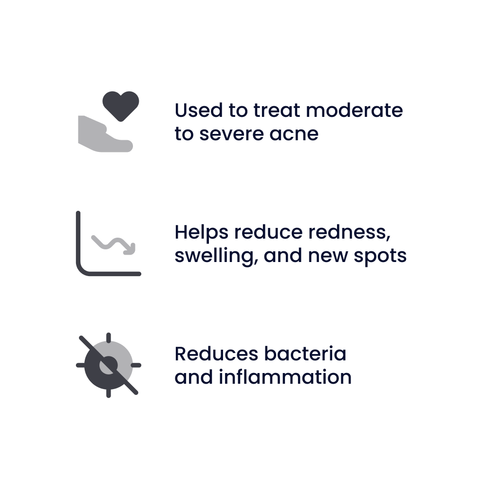 Doxycycline 50mg Capsules are an antibiotic used to treat acne, particularly moderate to severe forms that have not responded to topical treatments. They work by reducing the growth of bacteria (Cutibacterium acnes) on the skin and decreasing inflammation within blocked pores. This helps to reduce redness, swelling, and the formation of new spots.